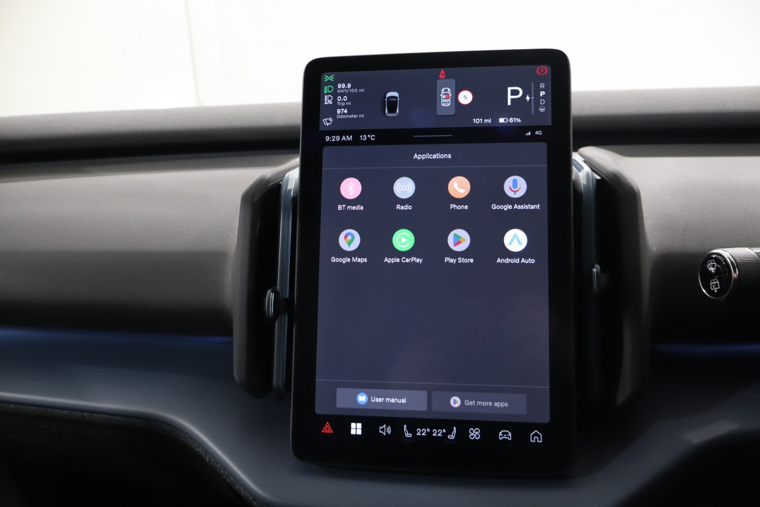 Inside, the car features Google Automotive Services, offering built‑in Maps, Assistant and Play Store integration for intuitive navigation and seamless connectivity. Apple CarPlay and Android Auto (wireless) ensure your smartphone integrates effortlessly with the central display.